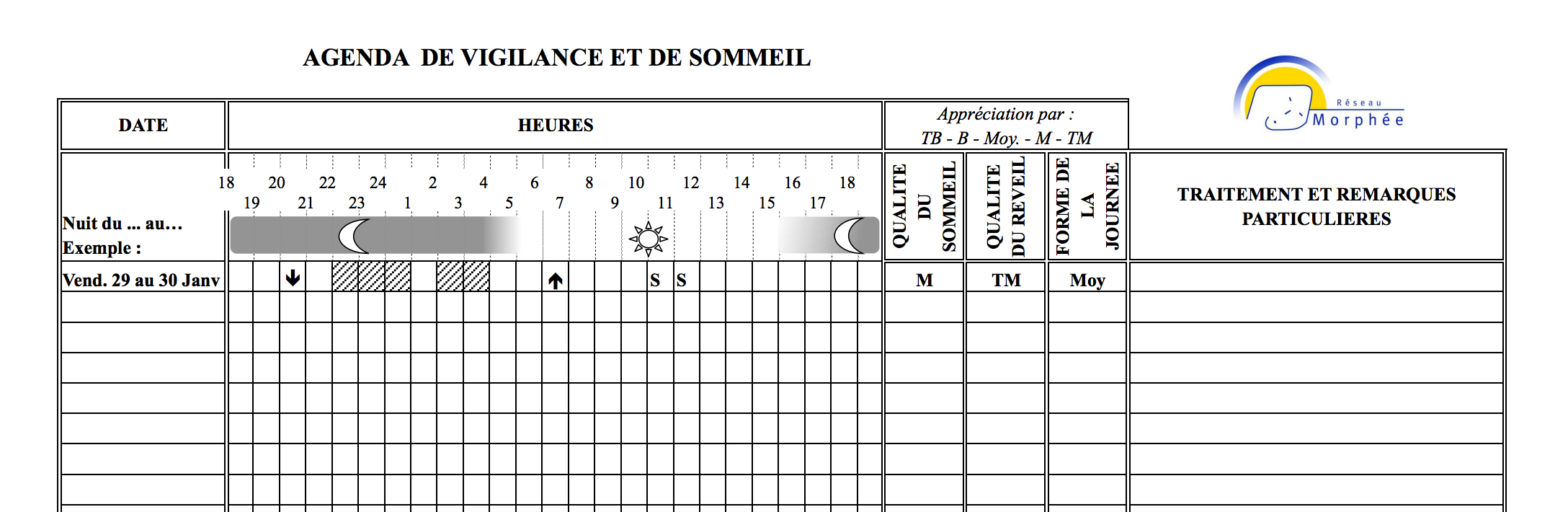 – Prenez également le temps de remplir l’agenda de votre sommeil au moins une quinzaine de jours avant votre consultation.